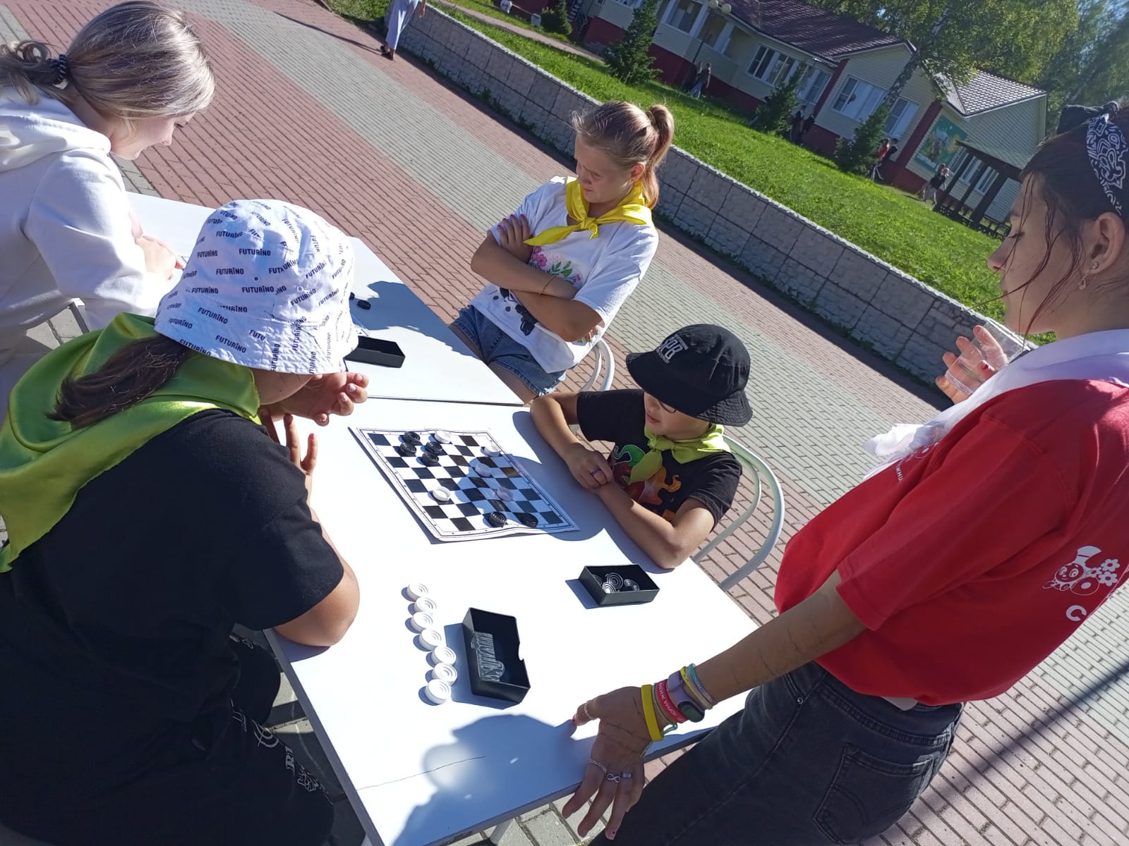 Большой спортивный праздник проходил сегодня в ЮЖ. ребята участвовали в четырех видах состязаний. шашки, шахматы, настольный теннис, пионербол и кульминацией всего дня стал товарищеский матч педагогического коллектива против сборной детей ЮЖ.