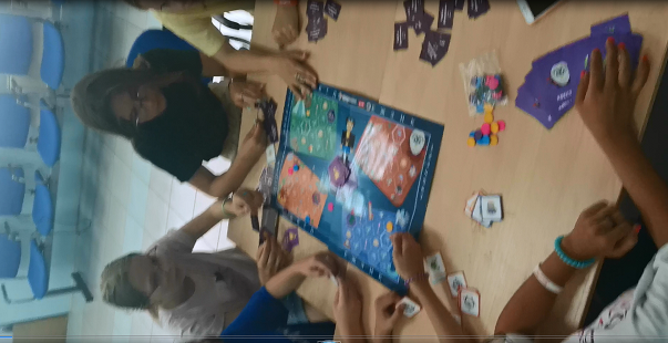 Сегодня ребята всех возрастных групп осваивали настольные и подвижные игры, предоставленные ЖД игротекой. Многим понравились настольные игры "Квадрогейм", "Пароль-контроль" и "Профессии мечты". Ребята из средней группы изучили правила игры и поиграли со своими Гномами - 6 отрядом. В настольную игру "Квадрогейм" было интересно играть всем.
