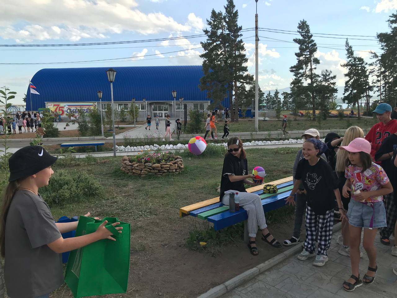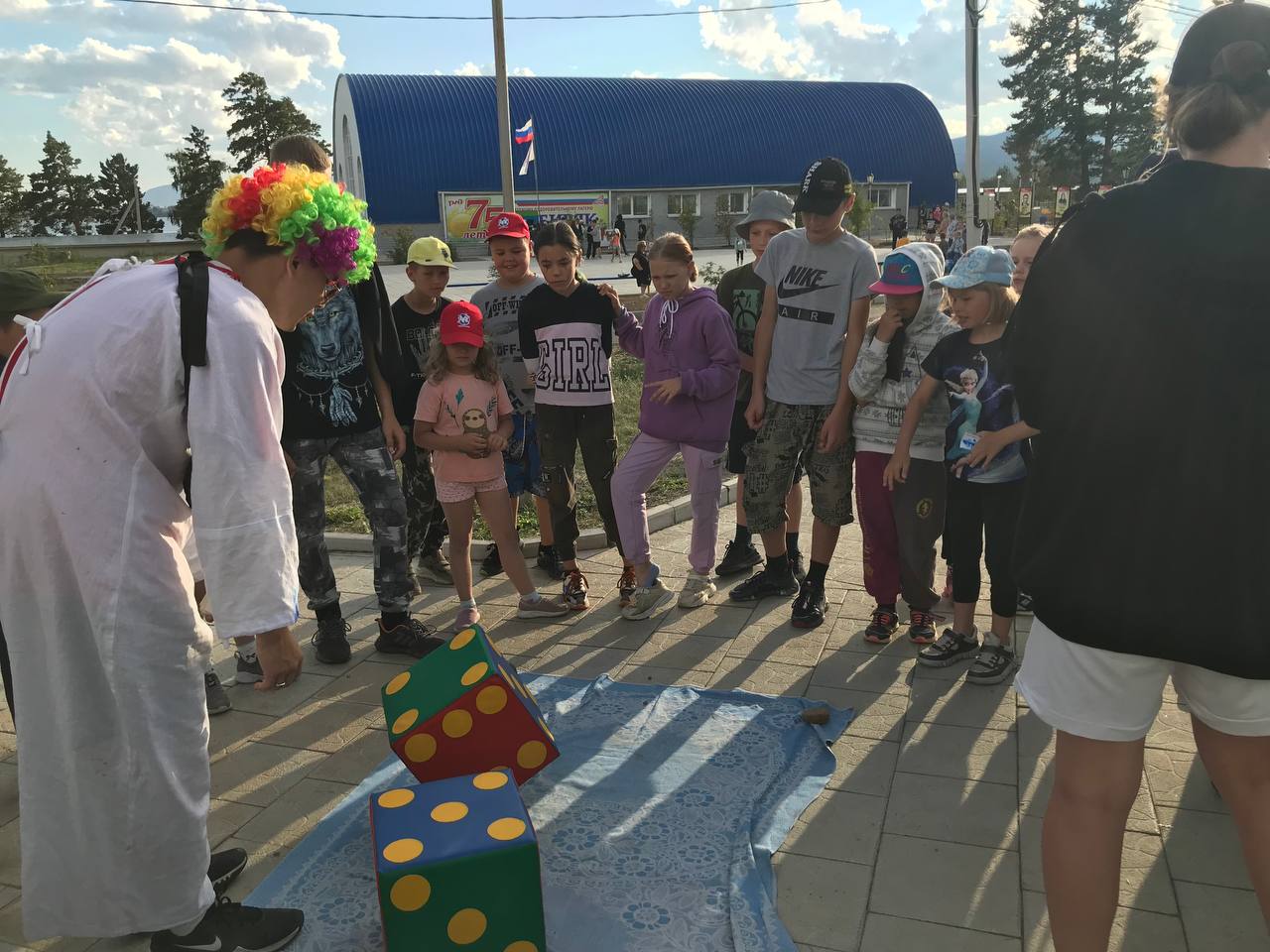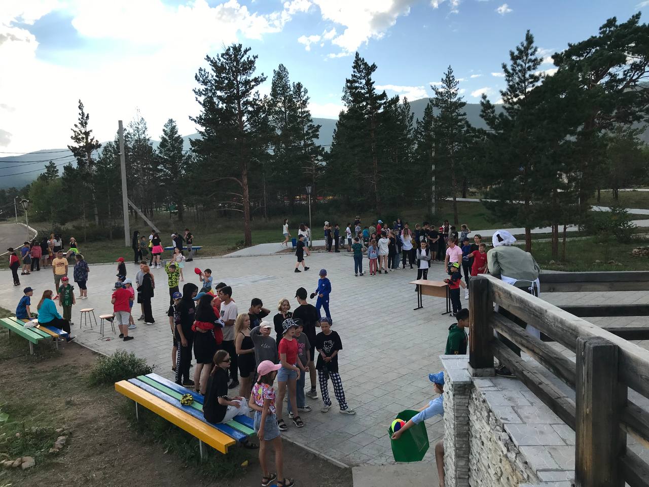 Игровая поляна-место сбора разных игр Железнодорожной игротеки, где за правильное прохождение выдают валюту лагеря, а в конце вечера суммируется общая заработанная сумма. Так же сегодня наши вожатые одели костюмы, чтобы проходить стации было веселее. Всем детям очень понравилось и мы думаем ввести это на постоянной основе, так как это помогает ребятам развиваться сразу в нескольких направлениях из шестерёнки: духовно-нравственно, споортивно-зож и других