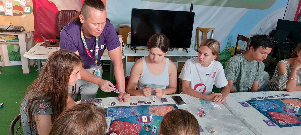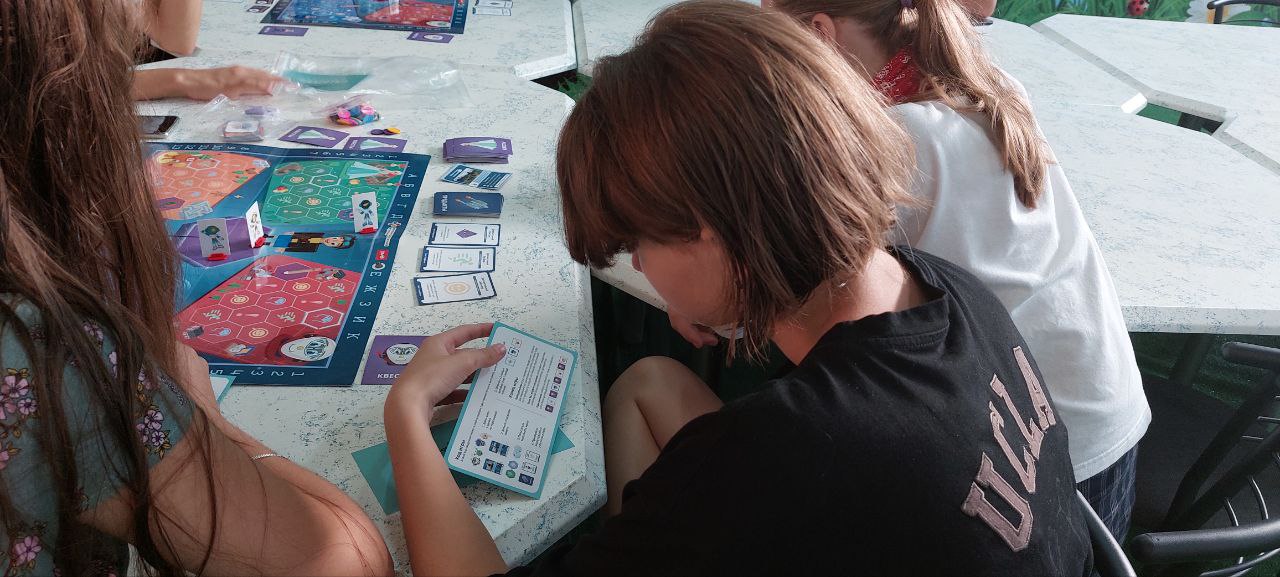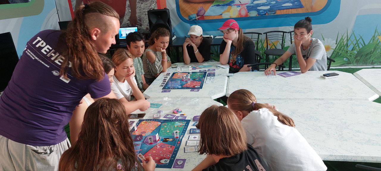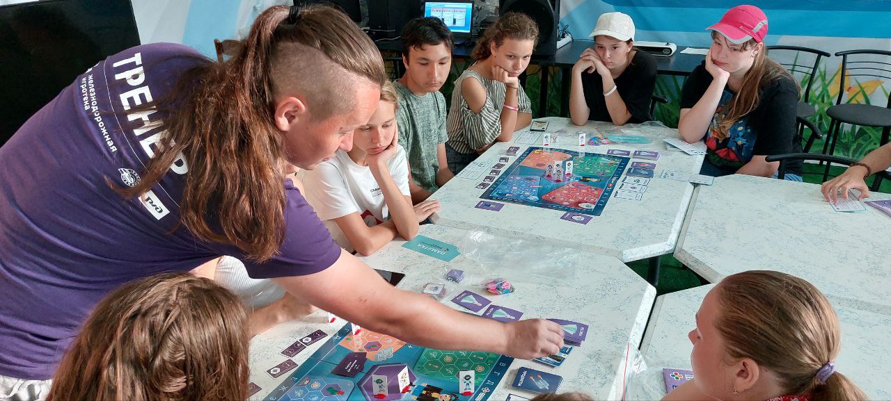 Вот мы с Проводниками «Железнодорожной Игротеки» и изучали правила настольной игры «Квадрогейм». Наши участники учились делать первые ходы и познавали хитрости и стратегии, которые могут пригодиться юным участникам программы.
