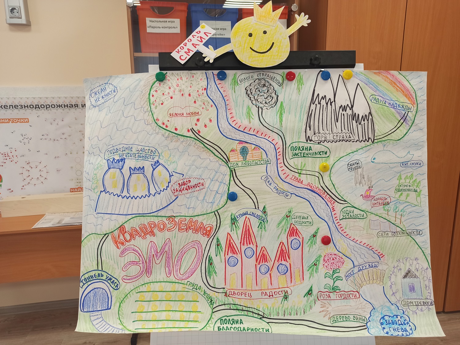 Король Смайл говорит: "Не бывает хороших или плохих эмоций, все они необходимы. На КвадроЗемле ЭМО и в тренировочном центре Короля Смайла вы обязательно научитесь управлять ими, чтобы каждая эмоция не была тяжелой и неподъемной".