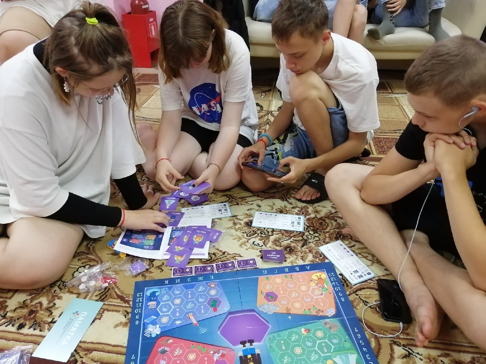 Проводники посетители теоретическое и практическое занятие «Знакомство с настольными играми «Железндорожной иротеки». Тренировочный центр принцессы Иммунелы. Настольная игра «Квадрогейм»». Сперва Проводники ознакомились с методикой проведения игры «Квадрогейм». Игра зарядила всех положительными эмоциями. А уже на практике старшие помогали младшим разбираться в правилах игры.