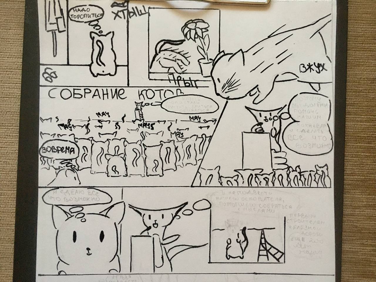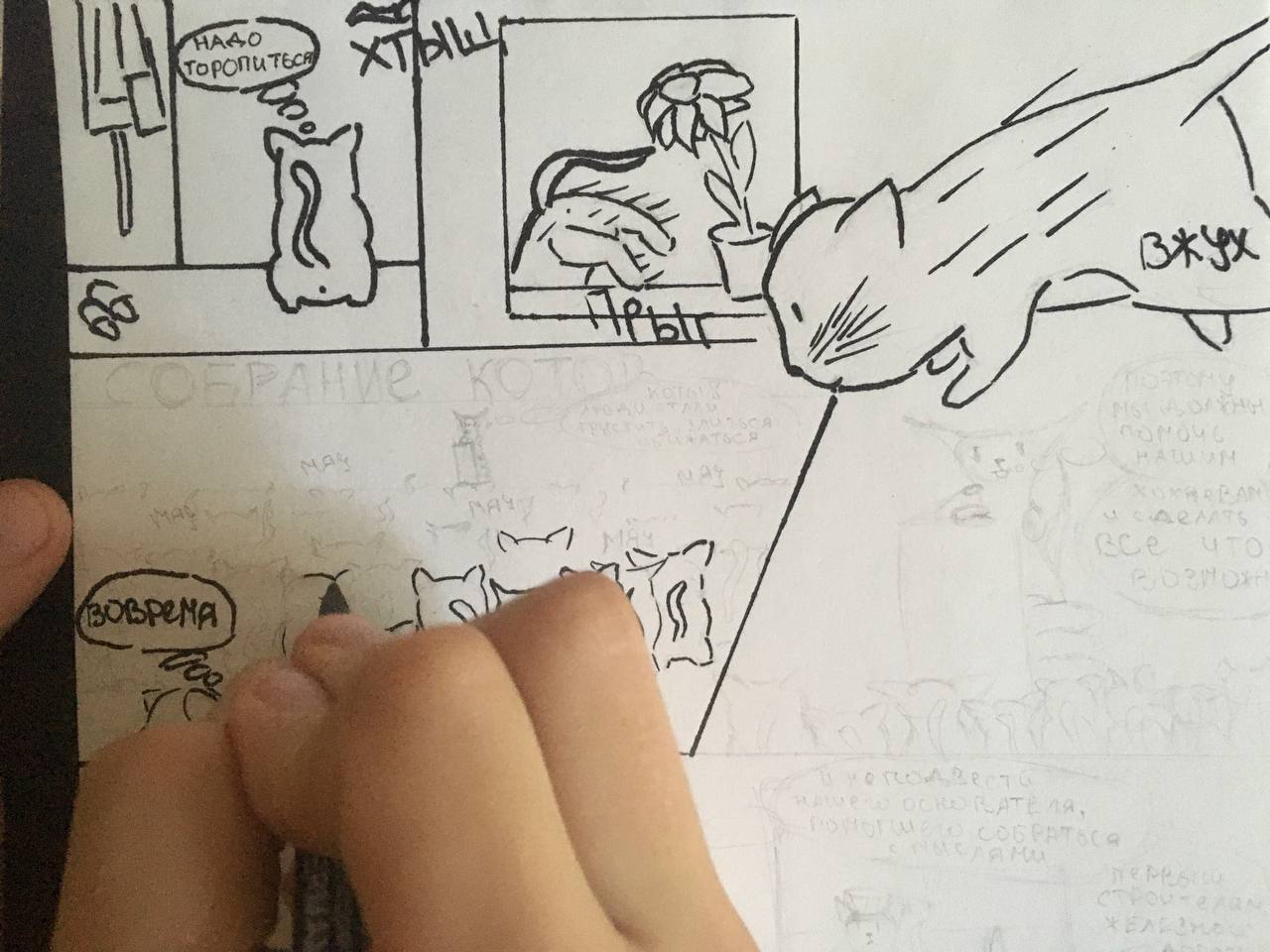 Действие комикса происходит в мире, где коты оберегают людей. И один из них помогает своей хозяйке в трудной ситуации!
