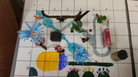 Сегодня прошла сборка командных квадроземель для парковки квадронаатов, и уголков команд. Ребята проявили свою фантазию и земли получились интересными, много объектов сконструированных из бросового материала, а разных животных и деревья они слепили из пластилина.