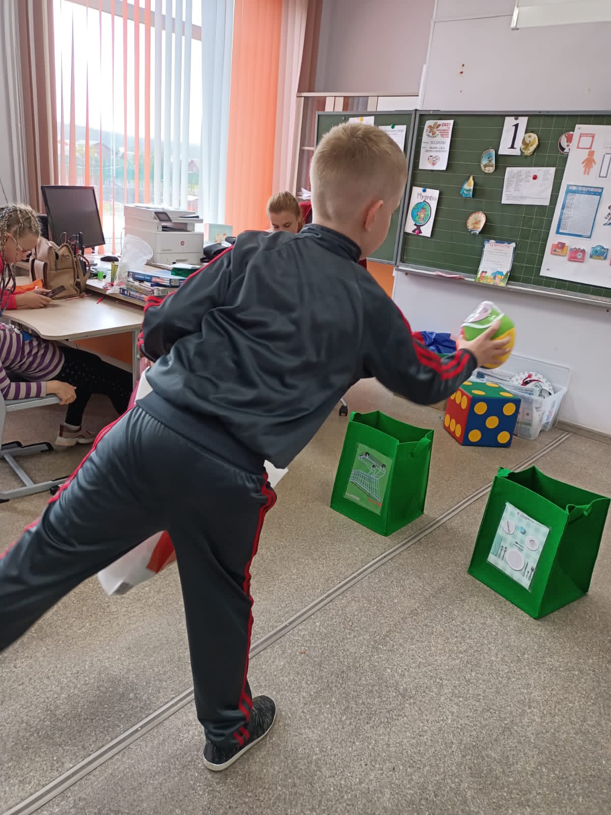 Ребята на Умных планшетах работают в парах: один работает, второй контролирует. Играли с корзинами, вместе приготовили продукты для супа, для каши, в холодильник, и домой.